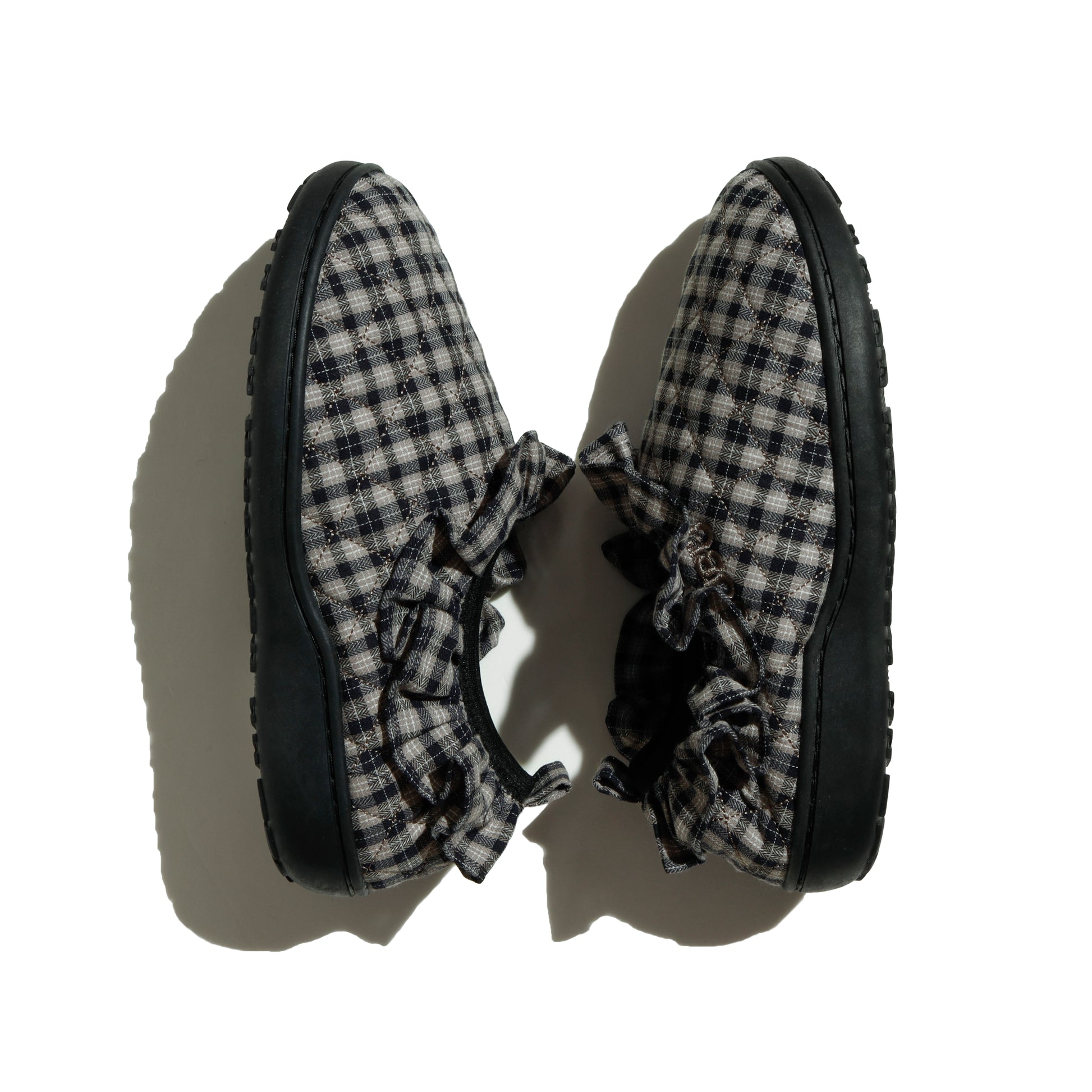 チェック柄のキルティング地にフリルを添えた、COYSEIOらしいノスタルジックな雰囲気を放つ「FLUFF CHECK PADDING SHOES」